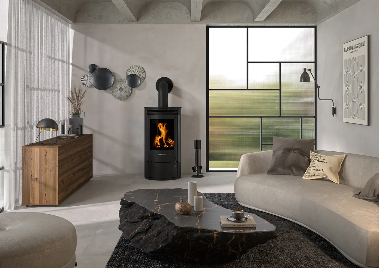 L’Arktis 7 2.0 pureBLACK associe un design stylé d’un noir profond à une technologie de pointe. Avec sa vitre à effet pureBLACK, son revêtement en béton réfractaire noir et son élégante peinture « Deepblack », ce Poêles à bois attire tous les regards, même lorsqu’il ne brûle pas.