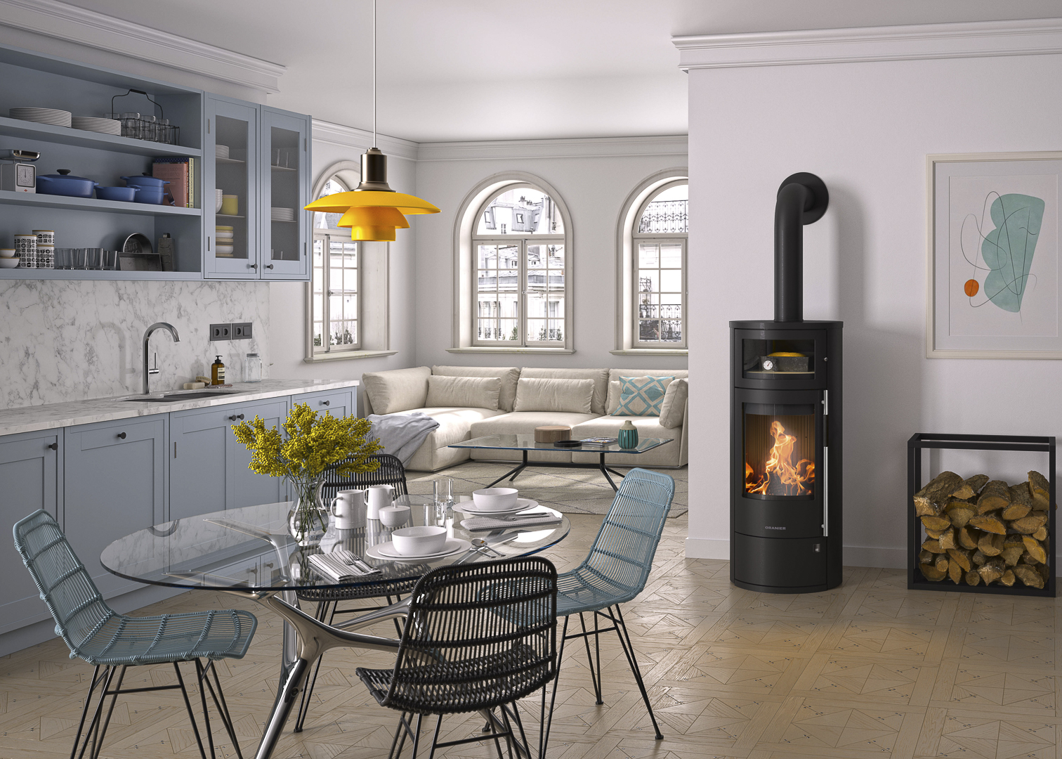 Intérieur en béton réfractaire / ORANIER Snap-Lock-Système / Dispositif vitre propre / Triple arrivée d’air
